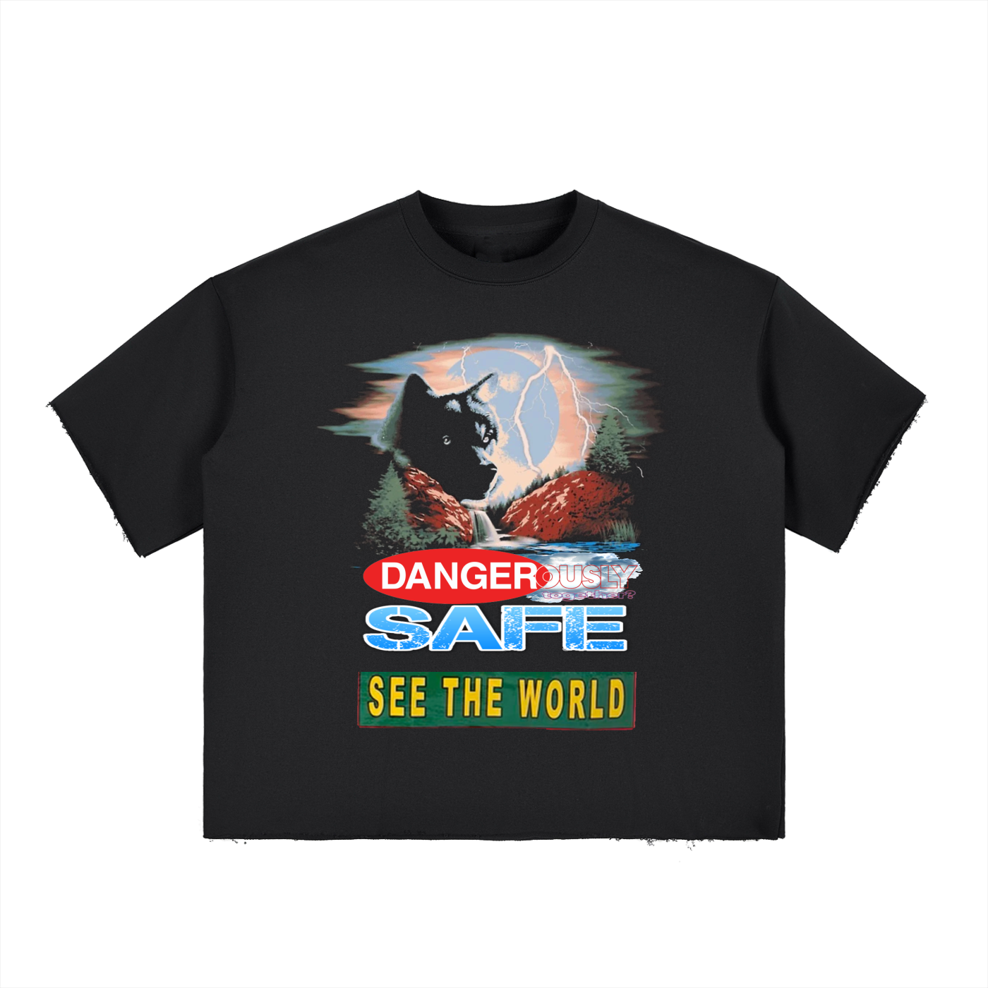 Boxy Half-Sleeve Raw-Edge T-Shirt